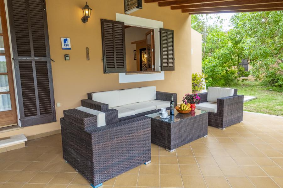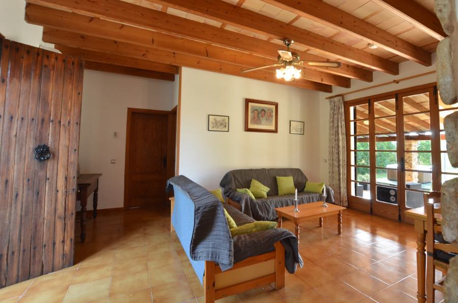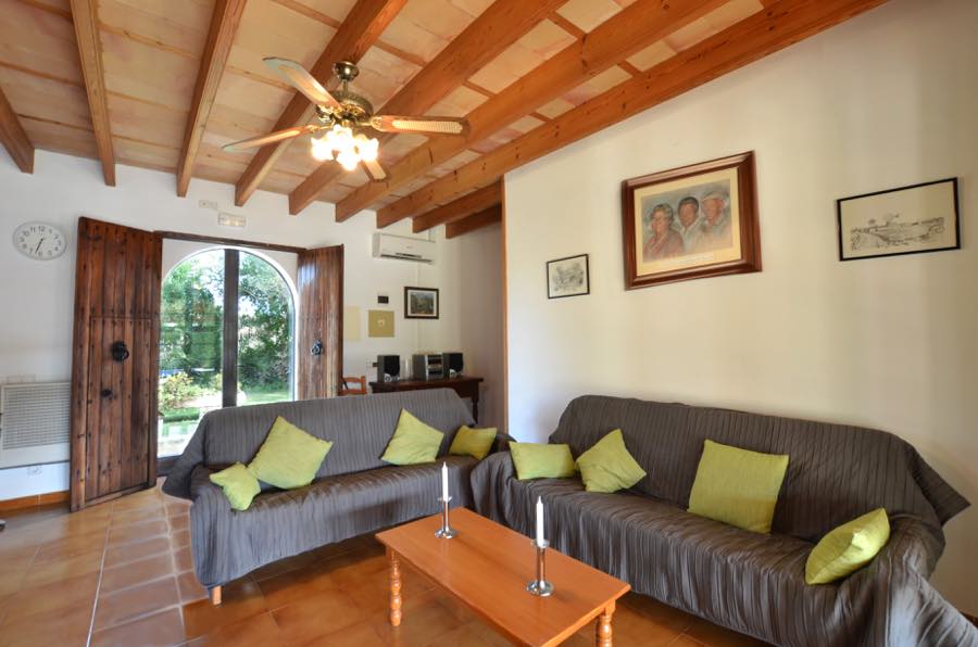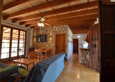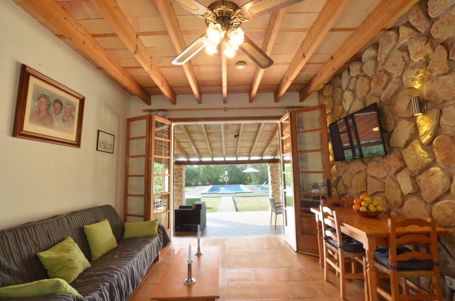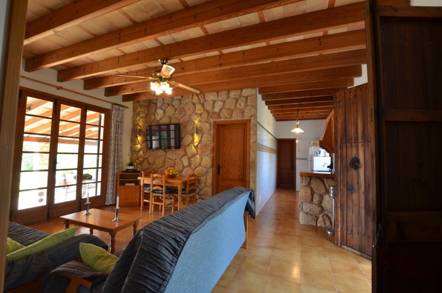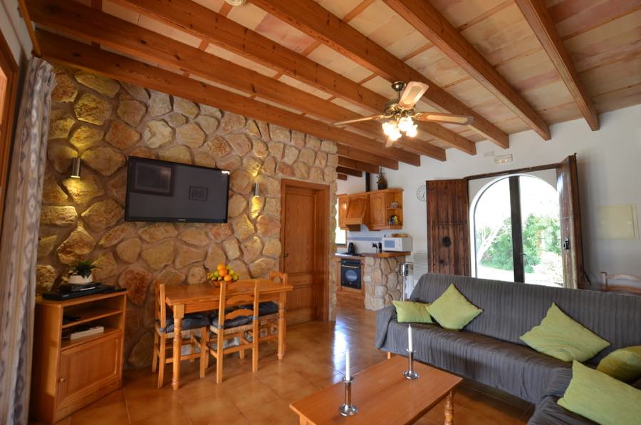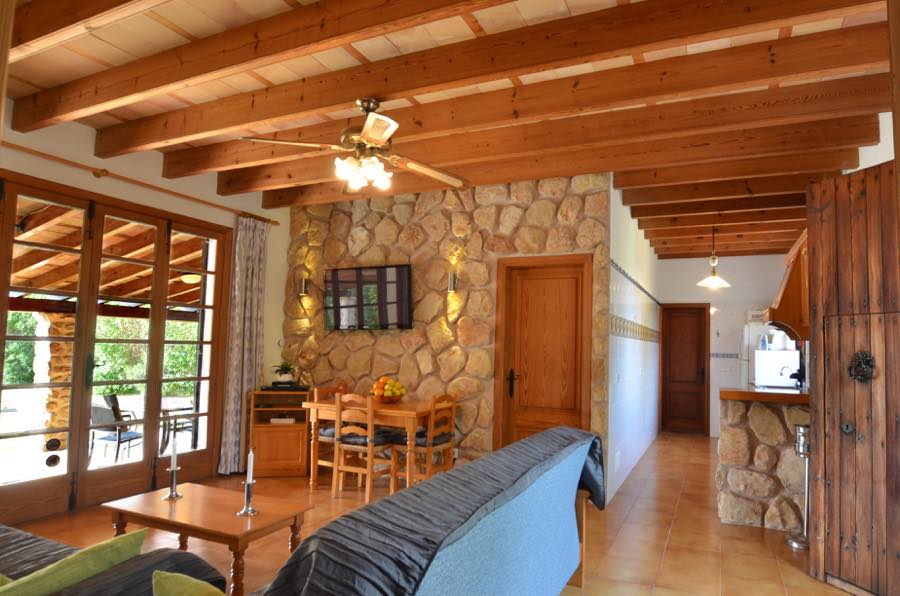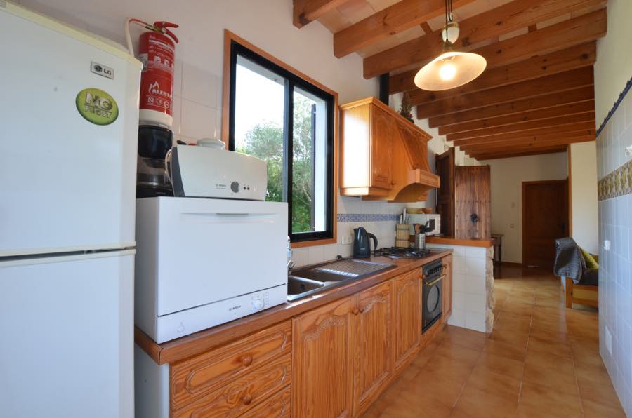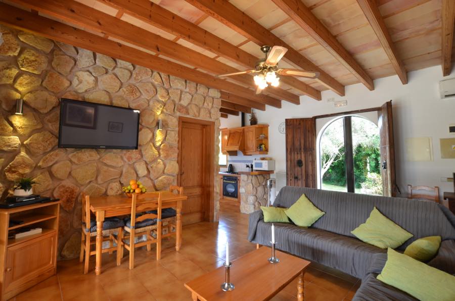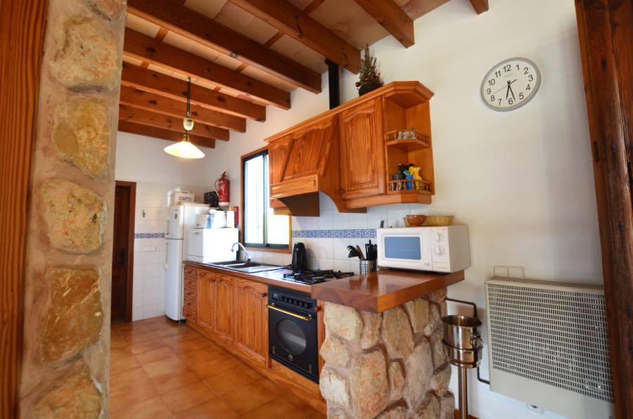 Der Flachbildfernseher mit Satellitenempfang an der typisch mallorquinischen rustikalen Steinmauer sorgt für Unterhaltung, es gibt auch einen CD-Spieler und wenn Sie in Kontakt bleiben möchten, gibt es Internet. Die offene Küche ist komplett ausgestattet mit Elektroherd, Gasherd, Mikrowelle, Kühlschrank mit Gefrierfach und Kaffeemaschine; alles, was Sie brauchen, um im Urlaub wunderbare Mahlzeiten zuzubereiten.