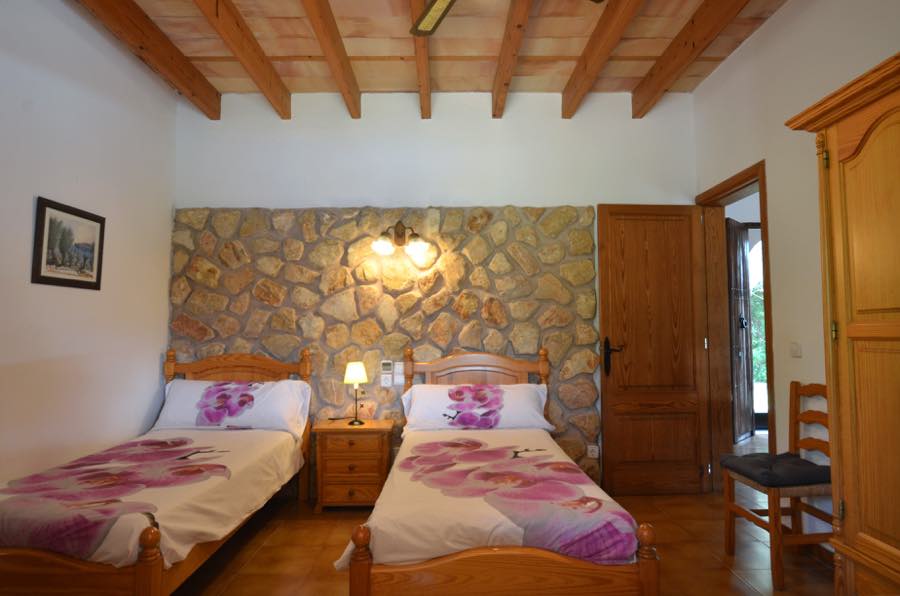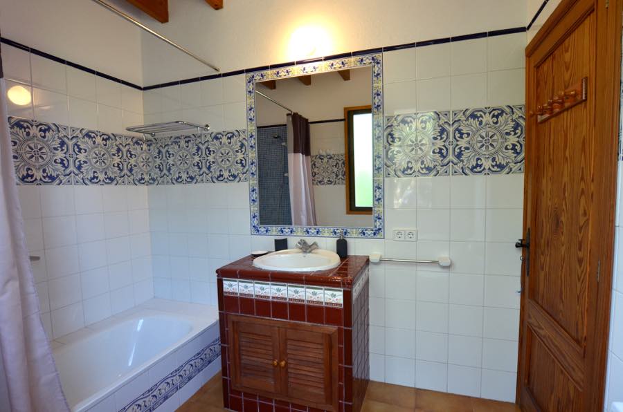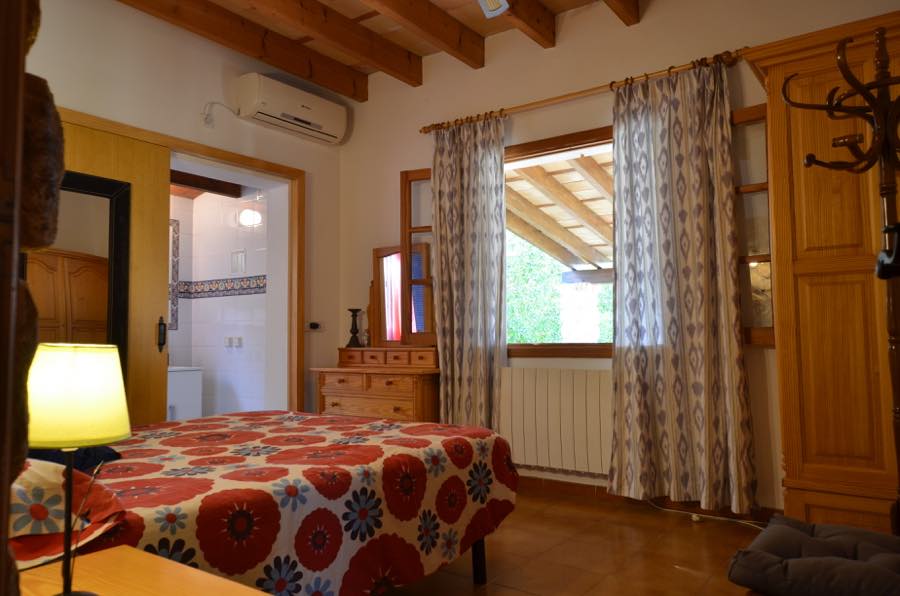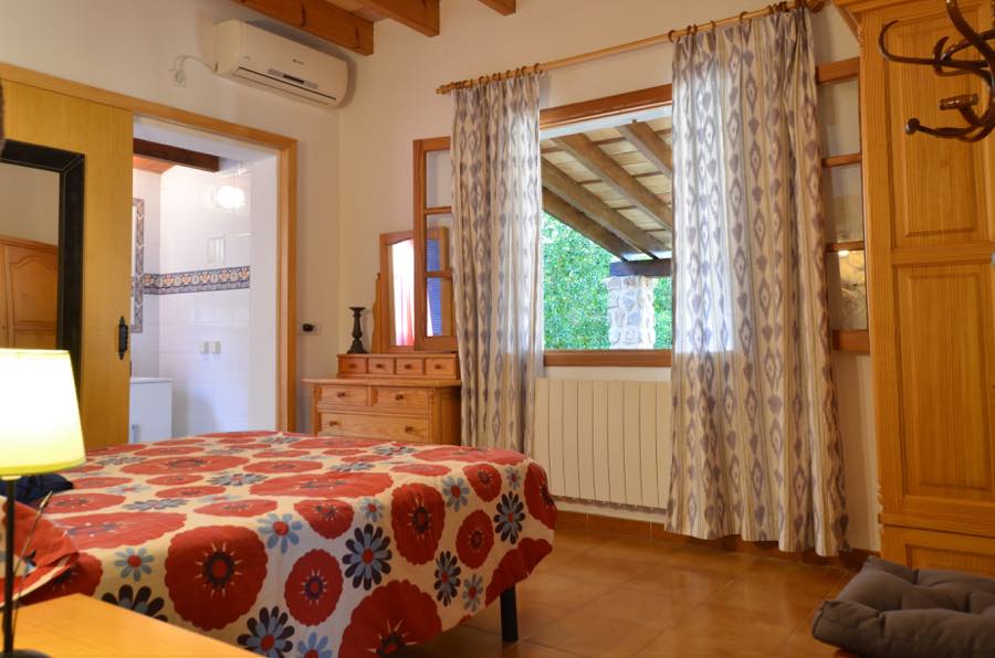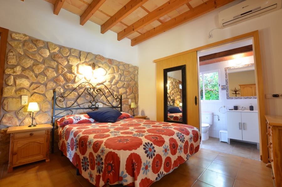 Die Schlafzimmer sind wunderschön gestaltet, wobei einige der ursprünglichen Steinelemente beibehalten wurden. Beide verfügen über eine Klimaanlage mit Warm- oder Kaltluft und sind ideal für eine Siesta und eine gute Nachtruhe. Das Hauptschlafzimmer verfügt über ein Doppelbett mit eigenem Bad für zusätzliche Privatsphäre. Außerdem gibt es ein zweites Familienbadezimmer, das mit typisch spanischen blauen und weißen Fliesen dekoriert ist.